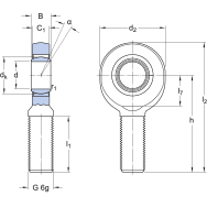 轴承需要维护,可以从侧面补充润滑。 提供左旋(前缀 SAL)或右旋的阳螺纹。适合静载、交替载荷或冲击重载;简单,安装方便