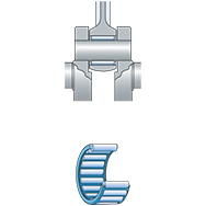 对于内燃机和压缩机的连杆,特殊滚针和保持架组件可用于活塞销(肘节)