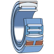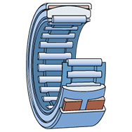 SKF 调心滚针轴承的轴承外圆为凸球面形的设计。 配合外圆凹球面形设计的两个聚合物座圈组合在冲压钢圈内并安装在外圈上。设计及变型:SKF 提供带内圈