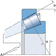 因此在运行期间具有低的摩擦力矩。圆锥滚子轴承的轴向载荷能力随着接触角 α 的增大而增加。接触角的大小(通常为 10° 至 30°)与计算系数 e 有关(根据产品表):e 值越大,接触角越大。