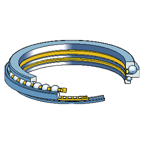 SKF 角接触推力球轴承为可分离式,即垫圈、钢球和保持架组件可分别安装。 虽然这些轴承最初设计用于支撑钻机的旋转台,但是它们也适合于其它应用。SKF 角接触推力球轴承具有多种设计和尺寸,最大外径为 1 800 mm,有两种主要设计:单向角接触推力球轴承